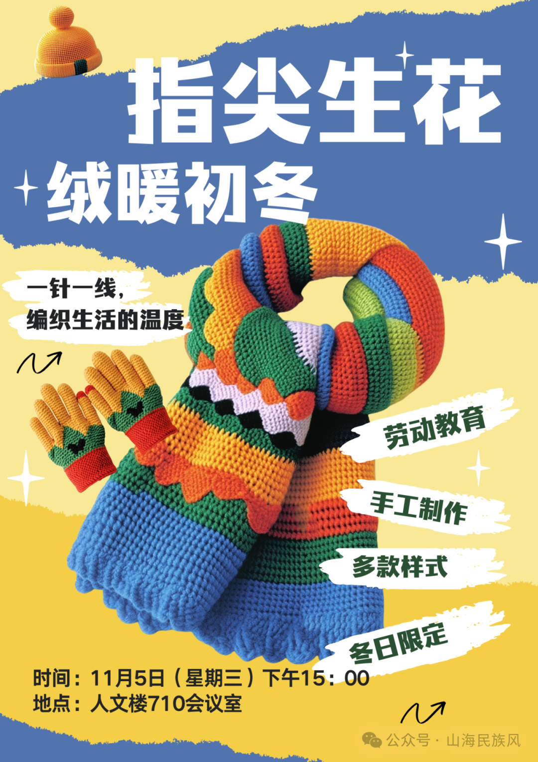 为贯彻落实劳动教育理念,丰富课余生活,培养学生动手能力与审美情趣,11月5日下午,我院在人文楼710会议室成功举办手工编织体验活动。活动特别邀请拥有30年编织经验的手工达人胡晓静老师现场授课,带领同学们走进编织艺术的世界。