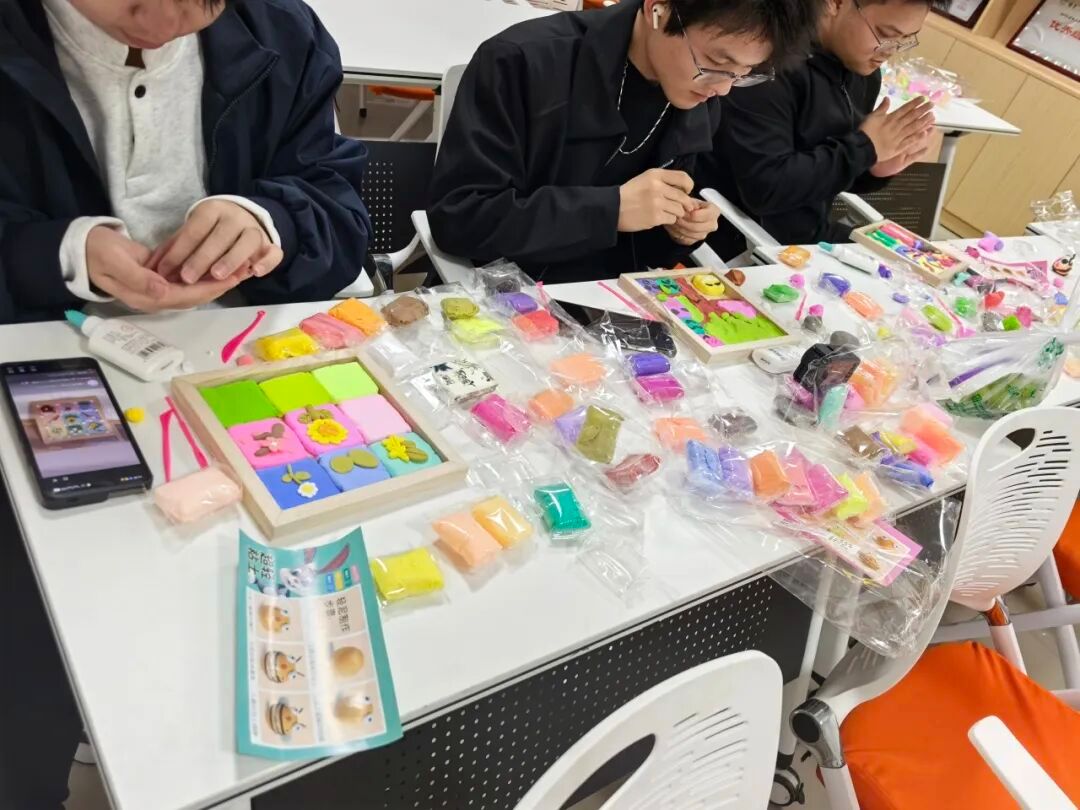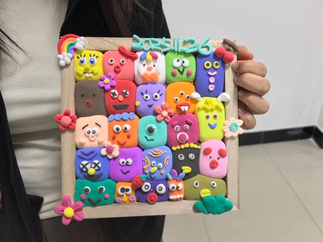 活动开始后,参与者可自由选取彩色粘土与画板,根据自身情绪状态进行主题创作。每位同学创作一幅属于自己的“情绪拼图”作品,完成后可自愿参与现场设立的“情绪画廊”展示环节,拍照留存专属回忆。所有参与作品均可带回留作纪念。