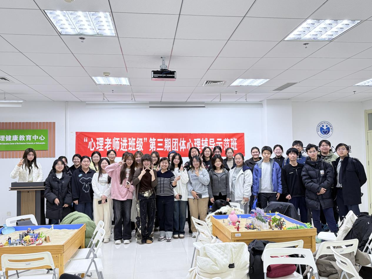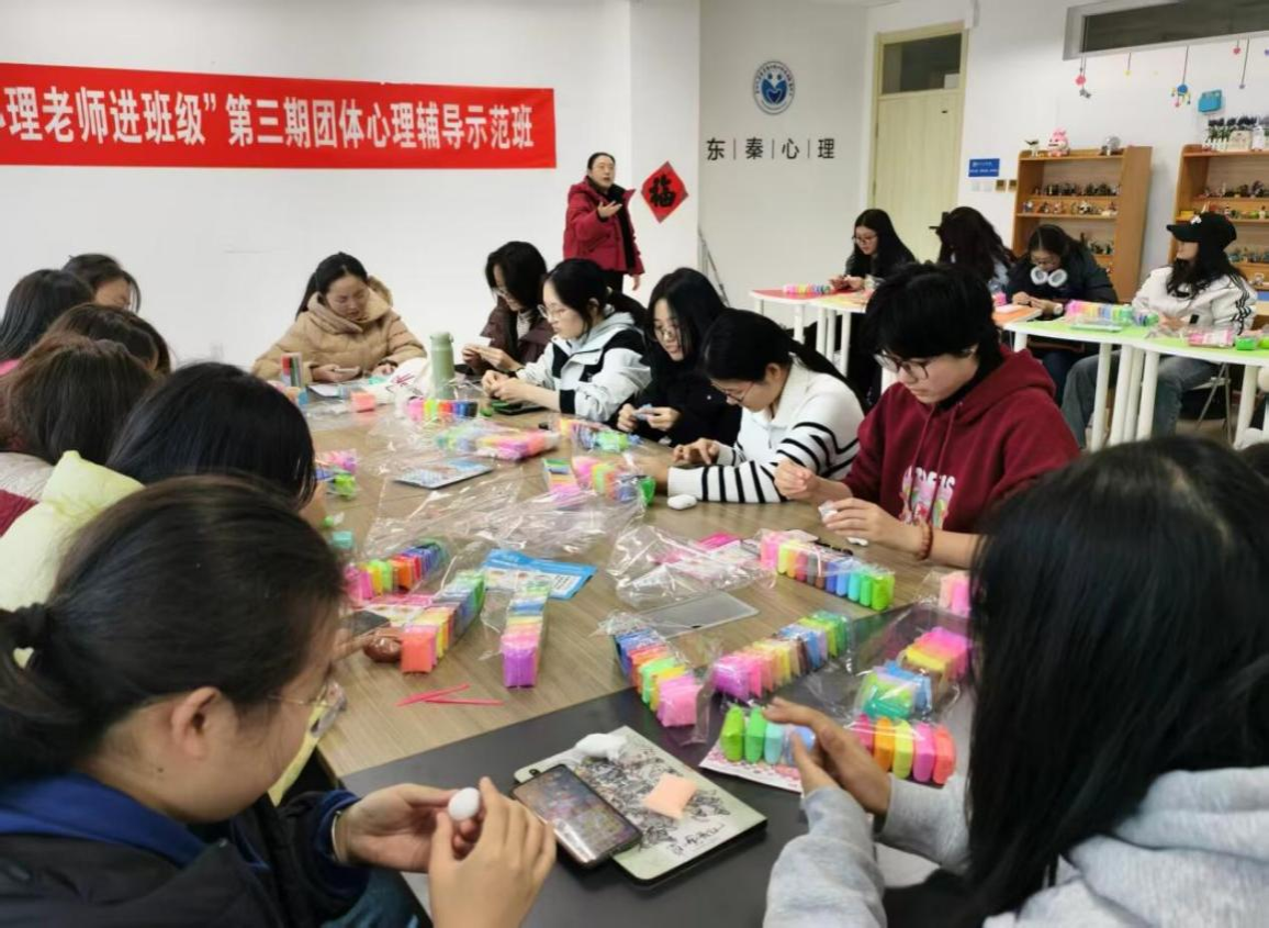 为深化心理育人内涵建设,积极主动为学生提供心理关爱,11月13日至27日,学生工作处心理健康教育中心精心策划并开展以心理沙盘游戏、黏土和绘画创作、团体素质拓展为核心的第三期团体心理辅导示范班活动,旨在引导学生在沉浸式体验中感悟心灵成长,在互动式探索中培育健康人格。活动由心理健康教育中心许旭、赵玲叶两位教师轮流带领,累计开展9场团体心理辅导活动,近300名同学参与,让心理关怀真正走进班级,贴近学生。