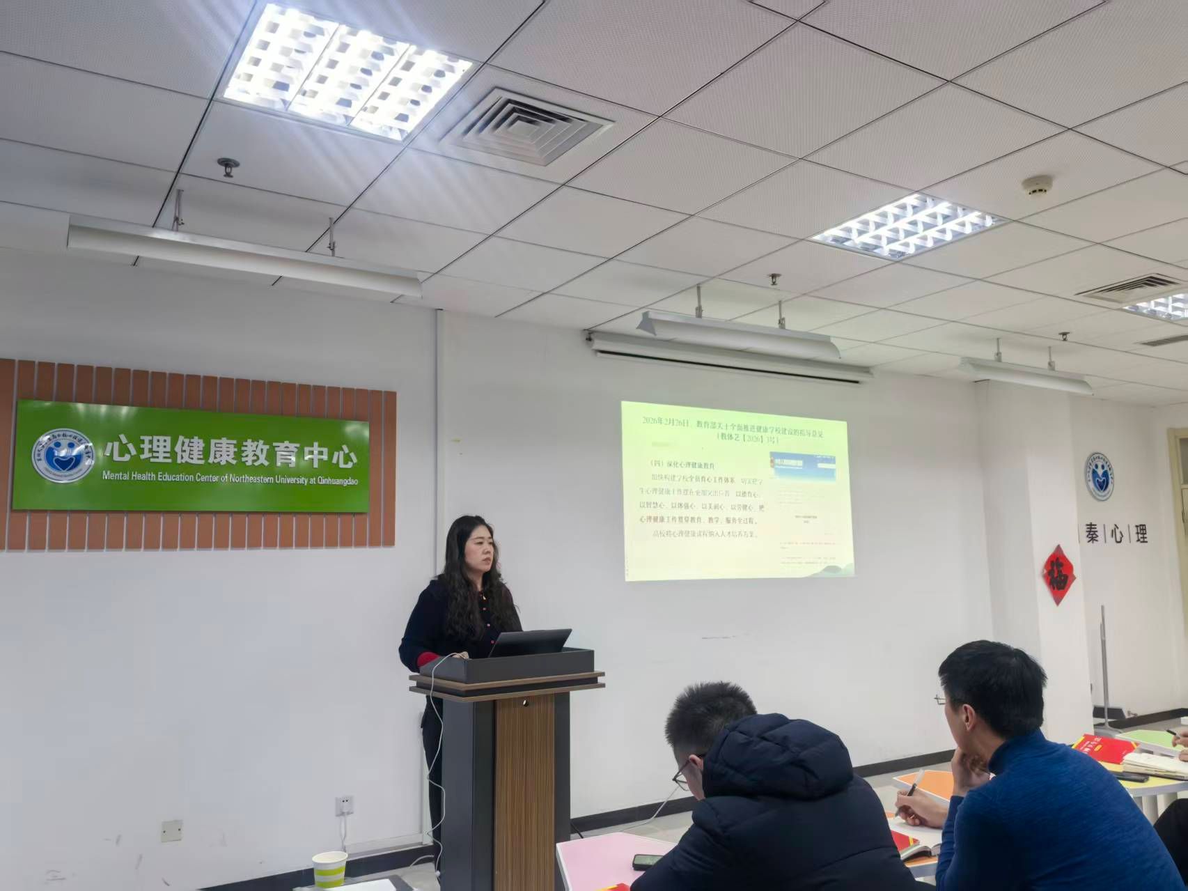 会上,学生工作处副处长刘佳结合东北大学相关工作部署,深入解读了《东北大学秦皇岛分校健康学校建设工作实施方案》中关于心理健康教育的具体要求,并围绕健全活动参与机制、优化风险预警体系、强化队伍能力建设、完善多方联动干预机制、落实精准帮扶等重点工作进行部署。随后,心理健康教育中心相关负责人作题为《心理问题的识别与风险评估实务能力提升》专题培训,围绕心理问题识别、风险评估及《中华人民共和国精神卫生法》等内容开展实务指导,旨在增强辅导员在学生心理危机事件中的识别敏锐度与处置规范性,为精准干预和科学处置奠定坚实基础。