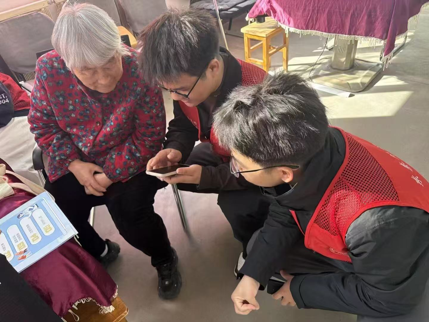活动伊始,志愿者开展了细致的八段锦教学,老人们认真模仿,现场氛围融洽;在防诈骗与健康知识宣讲环节,通过案例分析与实用技巧分享,有效增强了老人们的防范意识和保健能力;最后的智能手机辅导环节中,志愿者“一对一”协助老人解决扫码、挂号等难题并亲切交流,部分志愿者同步在社区分发传单,扩大宣传让活动的关怀覆盖到更多老年人。