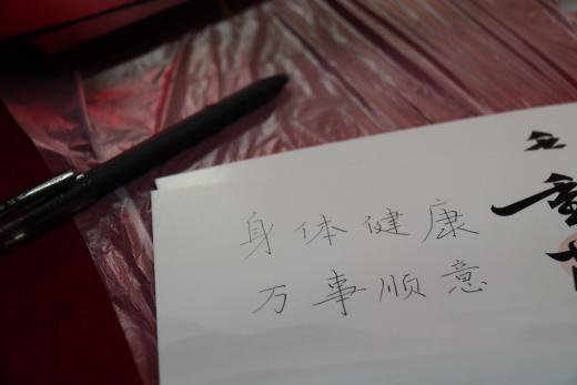 志愿者们在明信片上一笔一划书写“身体健康”“万事顺意”等祝福,随后双手递至长者手中,接过卡片的长者仔细端详,脸上纷纷绽放欣慰笑容。