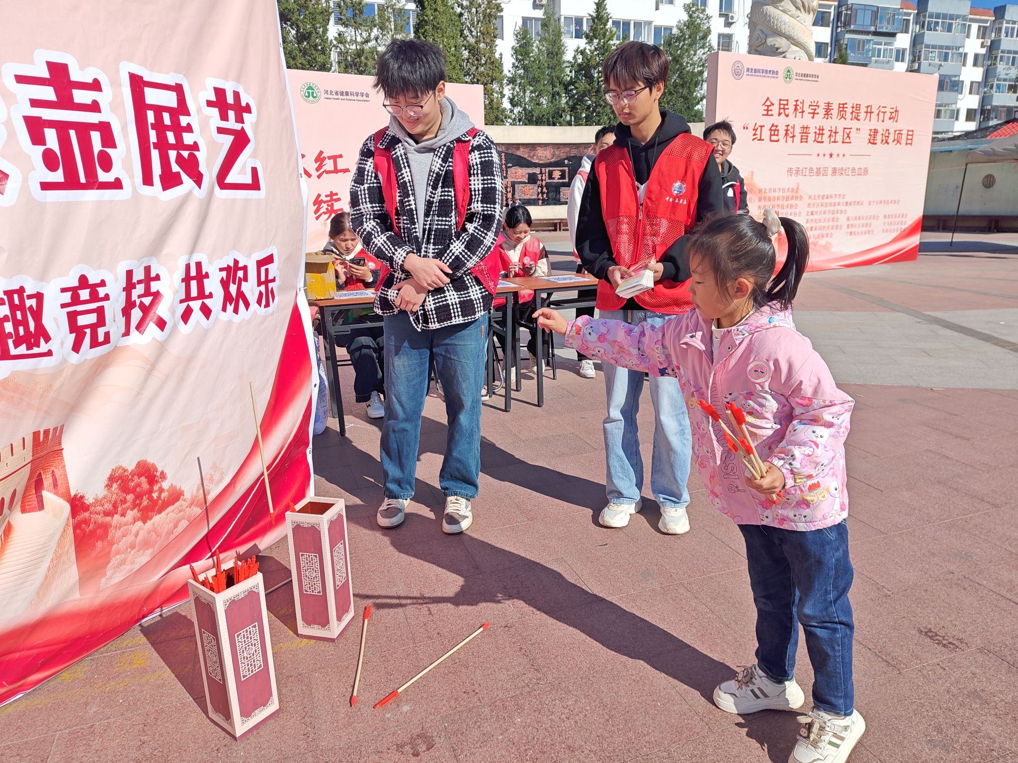 10月18日,东北大学秦皇岛分校管理学院青年志愿者协会组织青年志愿者走进金龙花苑社区,协助河北省科学技术协会积极开展全民科学素质提升“红色科普进社区”活动,为社区长者送去关怀与欢乐。志愿者们化身“科普宣传员”,围绕老年群体的生活实际和健康需求,耐心细致地为爷爷奶奶们讲解科普知识手册内容,将复杂的科学知识转化为通俗易懂的语言,有效提升了老人们的科学素养与健康意识。活动中志愿者们协助主办方组织老人们参与“重走长征路”套圈、投壶等活动,现场欢声笑语不断,老人们全神贯注地参与游戏,在轻松愉快的氛围中既活动了身体,也感受到了来自青年一代的温暖陪伴。
