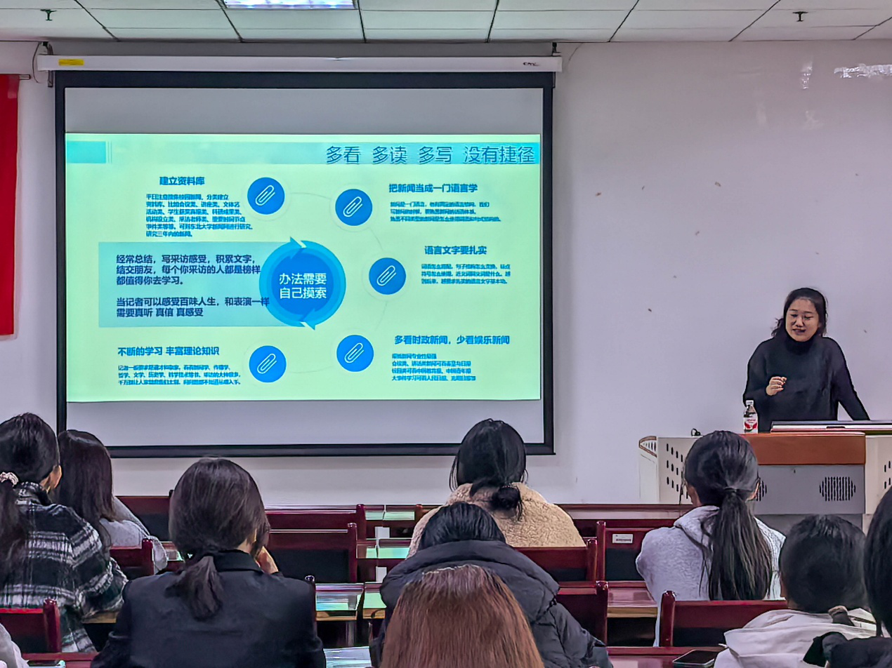 11 月 29 日,经济学院于科技楼 3065 室邀请校党委宣传部齐芳老师,为学院学生会开展以 “提升新闻写作核心能力” 为目标的宣传工作培训,学院辅导员曹博及学生会成员参与。