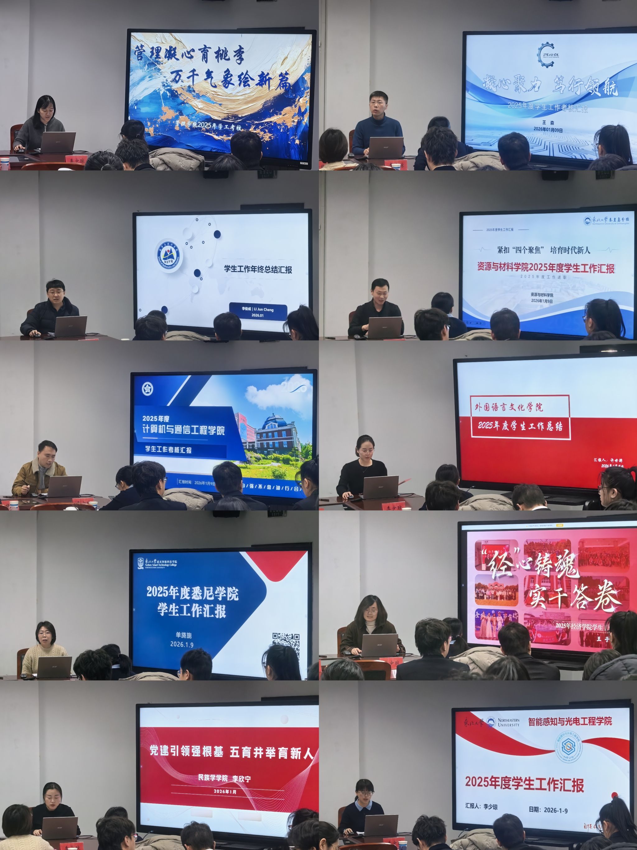 会上,学生工作负责人围绕年度内学生工作的基本情况、主要做法、工作成绩、亮点工作、学生工作不足之处及下一年度的措施等方面进行集中汇报。通过翔实的数据、生动的案例,全面展示了各学院在思想政治引领、“一站式”社区建设、劳动教育创新、高关怀学生群体帮扶等工作中的扎实举措与显著成果。